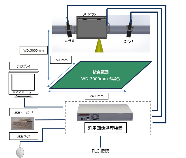 カメラWD:3000㎜ 検査範囲 2400㎜x1500㎜