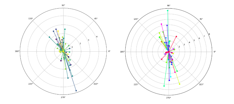 (初期位置にはバラツキがあるが同じ位置に向けて収束していく様子が見て取れる)