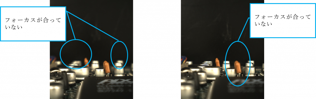 1種類だけであれば天面と端子部分のそれぞれにピントを合わせた位置の2枚を撮像することもできますが、高さの異なるものが混在すると高さの種類毎に切り替えるのか、3枚以上を撮像しておくのか、複雑になります。