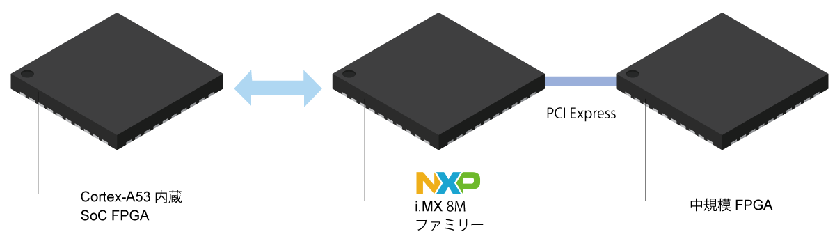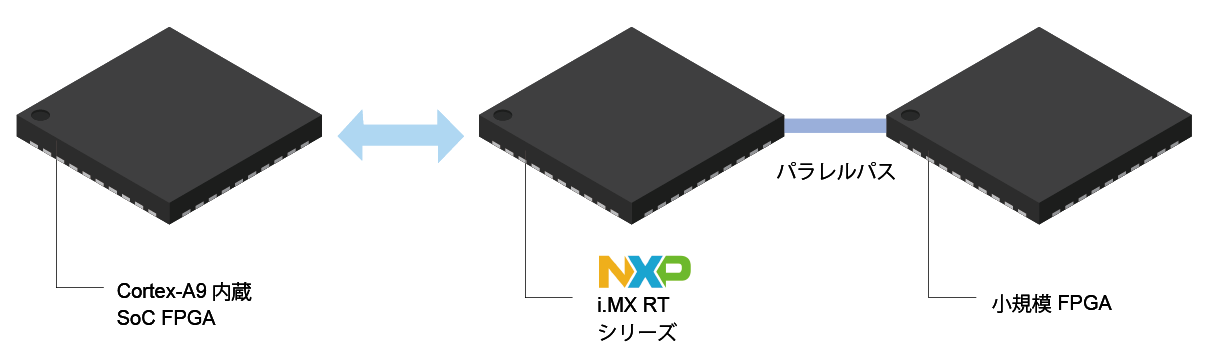 それでは具体的にSoC FPGAとプロセッサ+FPGAではどのような構成が考えられるでしょうか。NXPのプロセッサを例に検討してみます。